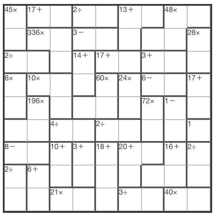 肯肯数独, 又称聪明方格,聪明格,算独,Kendoku,Kenken。比数独(Sudoku)更烧脑的智力游戏。